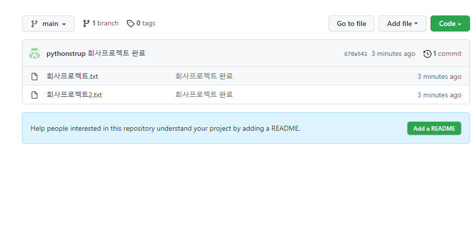 원격저장소에 직접 들어가보면 저장이 잘 되어있는 것을 확인할 수 있다.