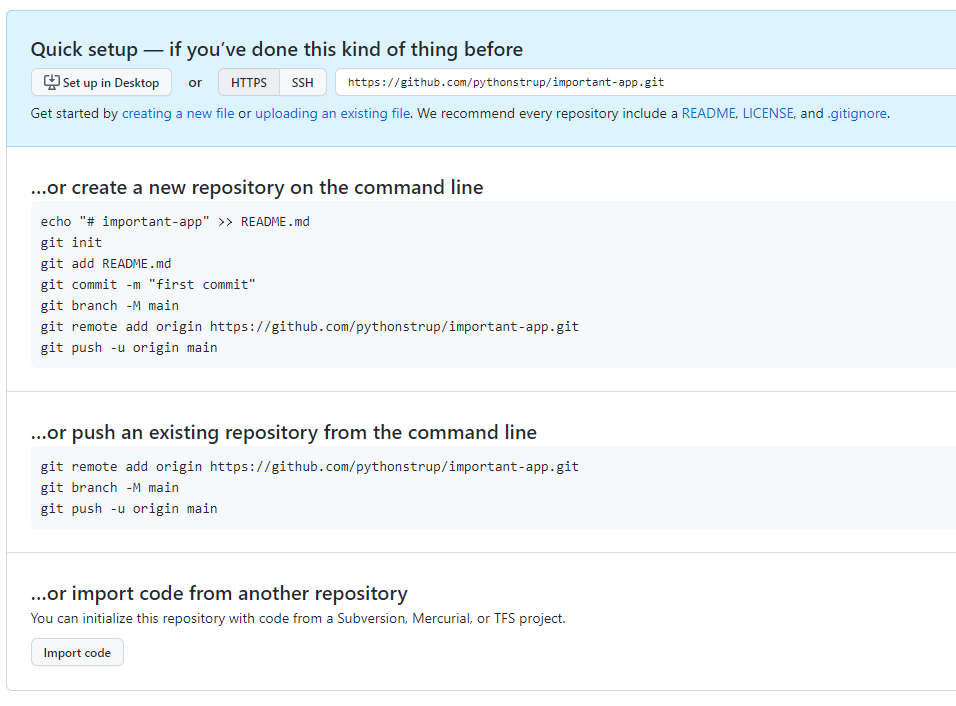 다른 레포지토리로부터 정보를 가져올 것이라면 ...or import code from another repository 를 쓰자.