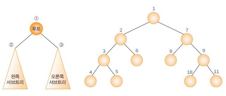 - 자손노드보다 루트노드를 먼저 방문한다.
