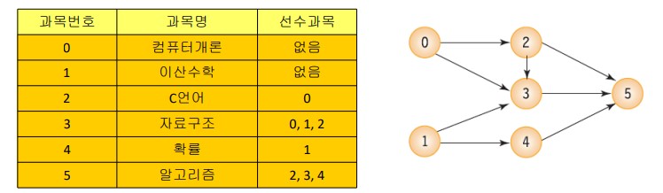 아래의 예는, 대학교 수업의 선수과목 관계이다.