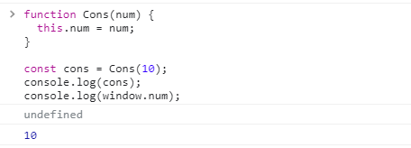 this.num을 통해 값을 할당해줘도 함수의 this 는 전역객체에 바인딩된다.