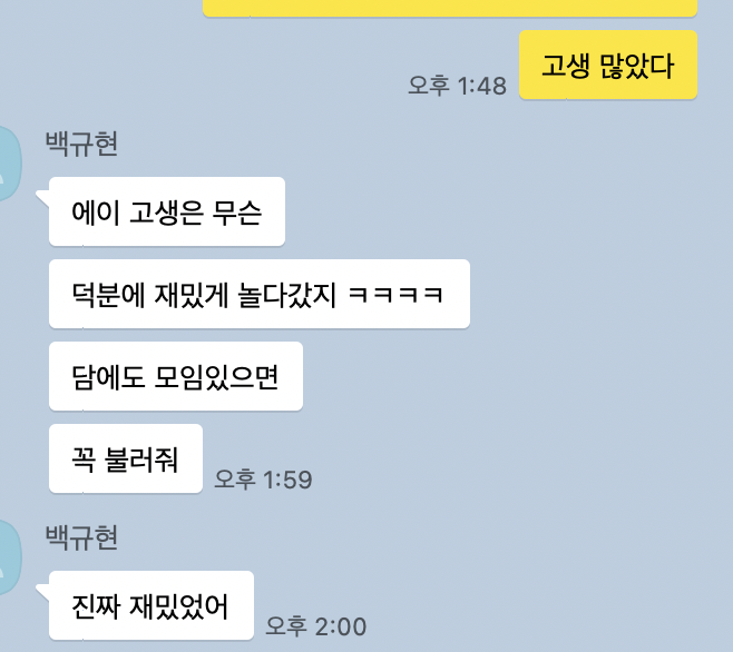 그래도 파티 당일에는 너무 즐거웠다. 다들 적극적으로 참여해줘서 재미있는 시간을 보낼 수 있었다.