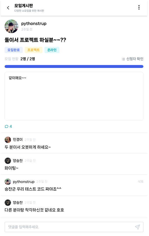 12월에 부스트캠프가 끝나자마자 친해지게된 동료들과 함께 스프링으로 프로젝트를 시작하게되었다.