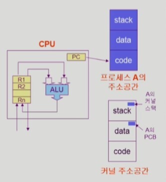 - CPU의 수행 상태를 나타내는 하드웨어 문맥