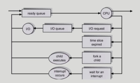 - 프로세스가 CPU를 할당받고 코드를 수행중이다가 입출력 요청이 발생하면 해당 장치 큐에 가서 줄을 선다.