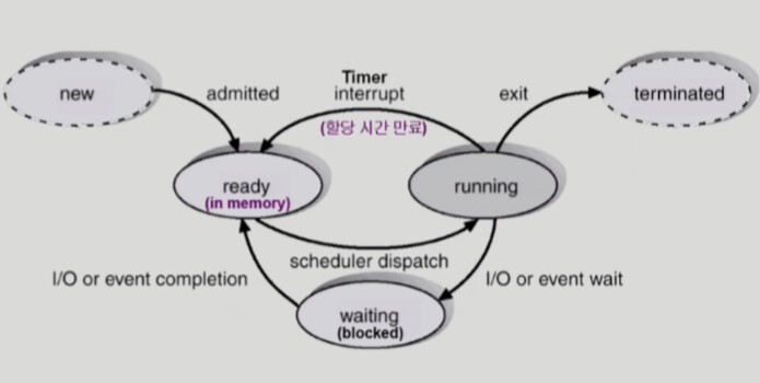 된다. - ex) 사용자가 프로그램을 일시정지시킨 경우(break key), 시스템이 여러 이유로 프로세스를 잠시 중단시킴(메모리에 너무 많은 프로세스가 올라와 있을 때)