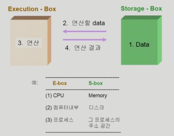 - 데이터를 저장하는 위치와 데이터를 연산하는 위치가 있다.