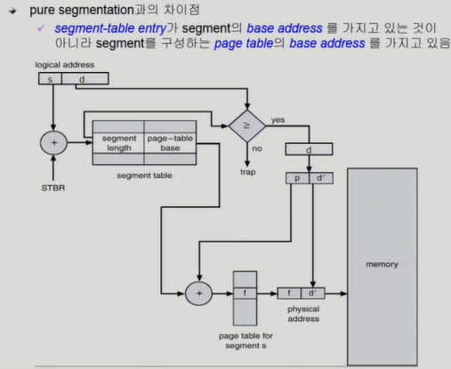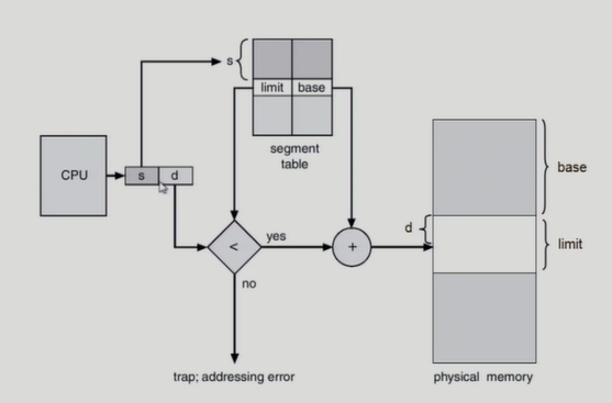 - CPU가 논리 주소를 넘기면 세그먼트번호(s)와 세그먼트오프셋(d)으로 나눈다.