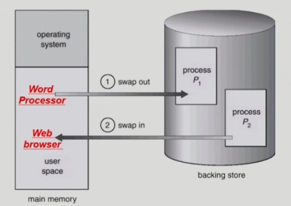 Swapping은 메모리에 올라온 프로세스의 주소 공간 전체를 디스크의 스왑 영역(swap area)에 일시적으로 내려놓는 것을 말한다. 이 때 스왑 영역을 backing store라고도 부르며 디스크 내에 파일 시스템과는 벼로도 존재하는 영역이다.