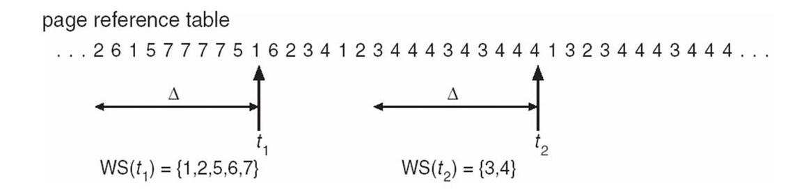 Working set은 Working set window라는 고정된 page 참조 횟수(시간)로 구할 수 있다.