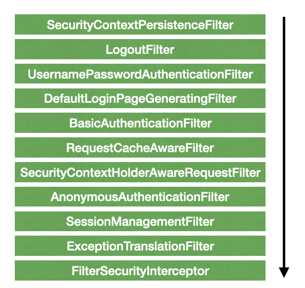 Spring Security의 Filter Chain은 아래 순서대로 진행된다. Logout Filter에 설정되어 있는 URI, Method와 일치하는 요청이 들어오면 LogoutFilter에서 해당 요청을 채간다.