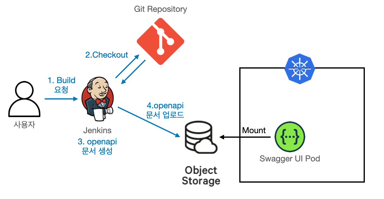 Swagger 문서를 생성하고, Swagger UI가 참조할 수 있는 문서를 업로드하는 과정을 Jenkins 파이프라인에 통합할 것이다. 기존 Dev 서버나 Production 배포 파이프라인에 이 작업을 추가하면, 서버가 업데이트됨과 동시에 Swagger UI도 자동으로 최신 상태를 유지할 수 있다.