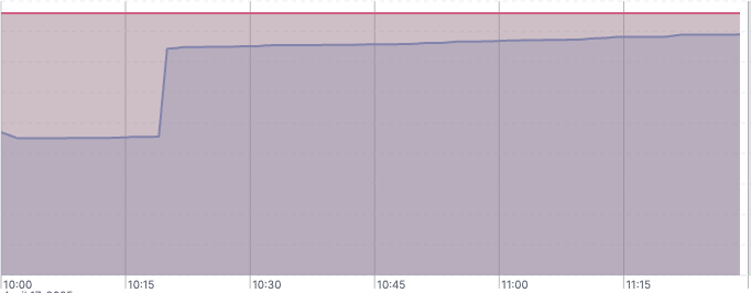 위 그래프는 JVM 메모리 사용량을 보여준다. 특정 시점에 메모리 사용량이 급격히 증가하고 있다. 많은 객체가 생성되었고, 그 객체들이 메모리에서 해제되지 않고 계속 남아있어 메모리 점유하고 있다. 이는 성능 저하와 장애로 이어질 가능성이 있다.