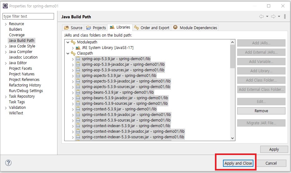 이제 Apply and Close를 눌러주면 모든 설정은 끝이 나게 된다.