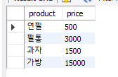 VALUES("연필", 500, "짱구", 5),