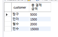 SELECT DISTINCT customer, SUM(price) AS "총 결제금액"