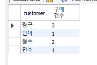SELECT DISTINCT customer, COUNT(*) AS "구매건수"