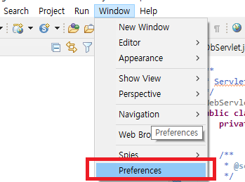 상단의 메뉴 Window > Preferences로 들어가보자.