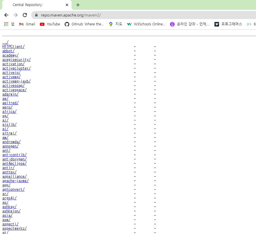 메이븐 인터넷 저장소이다. 잘 알려진 보편적인 jar파일이 Apache Central 저장소에 보관되어있다.