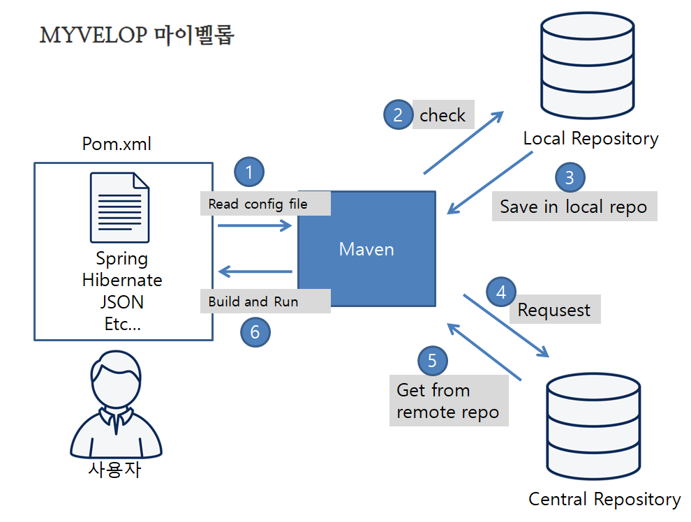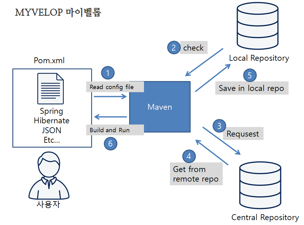 pom.xml에서 선언한 dependency들을 저장소로 불러와 사용하는데 그 과정은 아래와 같다.