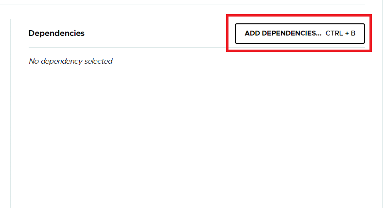 이제 제일 중요한 부분이다. ADD DEPENDENCIES를 눌러주자.