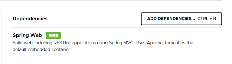 의존성 설정이 완료되면 위와 같이 Spring Web이 표시되어 있을 것이다.
