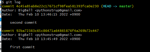 second commit이 삭제된 것을 확인할 수 있다.