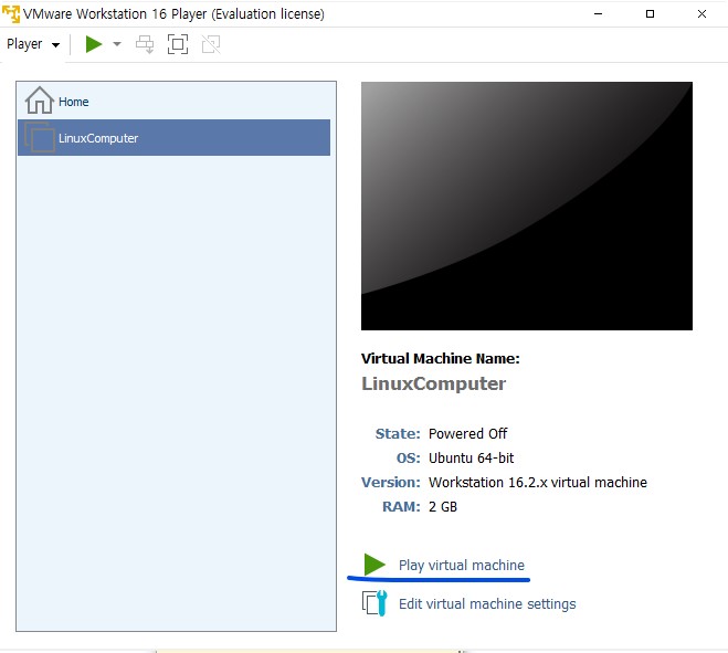 이제 가상머신을 실행해준다.