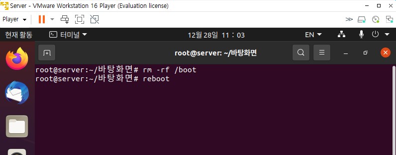 부팅파일을 삭제해서 문제가 일어난 지점이라고 생각하면 된다.