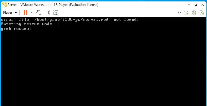 부팅 파일이 지워지면 아래와 같이 부팅이 실해되지 않는다.